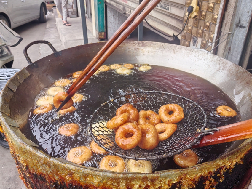如果说西式甜甜圈是裹着糖霜的甜腻,安海人更认这口“咸咸圈”。本地人喊它“咸粿仔”,也叫“咸粿圈”,模样和甜甜圈有几分像,味道却截然不同。咬开的瞬间,先是外皮的脆响,接着是米香混着蒜蓉的咸鲜,不粘牙,不齁咸,嚼着还有点芋头的颗粒感,配一碗热豆浆,就是安海人最满足的早餐。