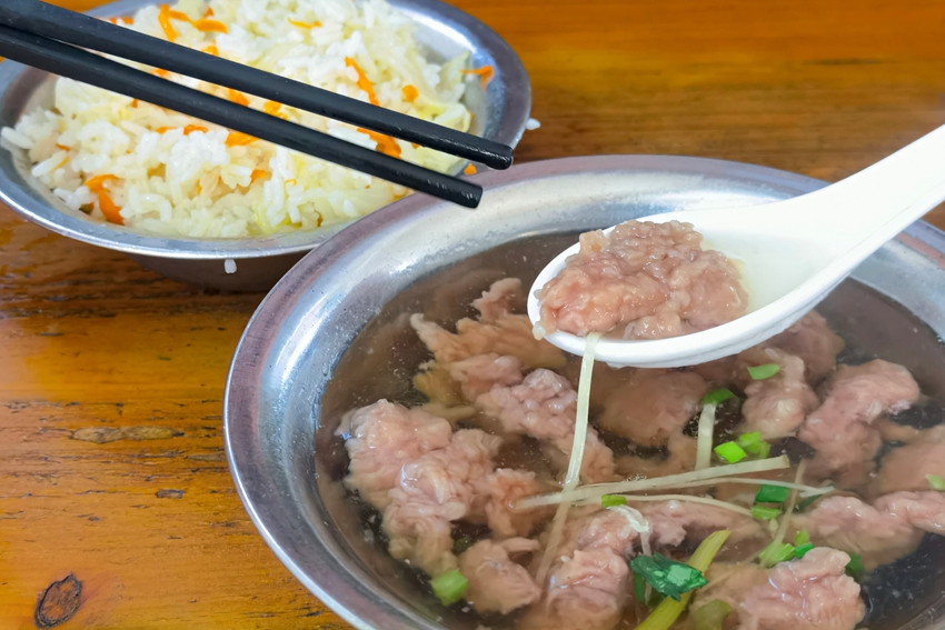 择一家骑楼下的小店坐定,点一份招牌牛排,配一碗咸饭。咸饭中拌入香菇丁、芥菜与萝卜丝,红绿相间,饭香扑鼻。再来一碗姜味浓郁的牛肉羹,入口暖润,肉香四溢。在这一饭一羹之间,泉州人午饭时的饮食智慧与生活滋味,尽数展现。