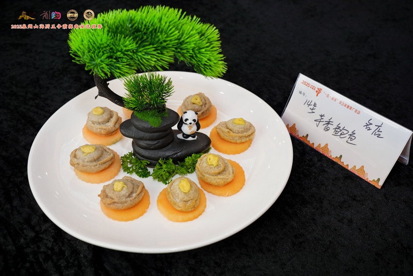 For the Nan'an round, participants were required to create dishes featuring abalone—a prized local delicacy—as the main ingredient. From Abalone Salad with Honeycomb Pastry and Mountain & Sea Abalone Tower to Chicken Braised in Tea Oil with Abalone, the displays were a feast for the eyes.