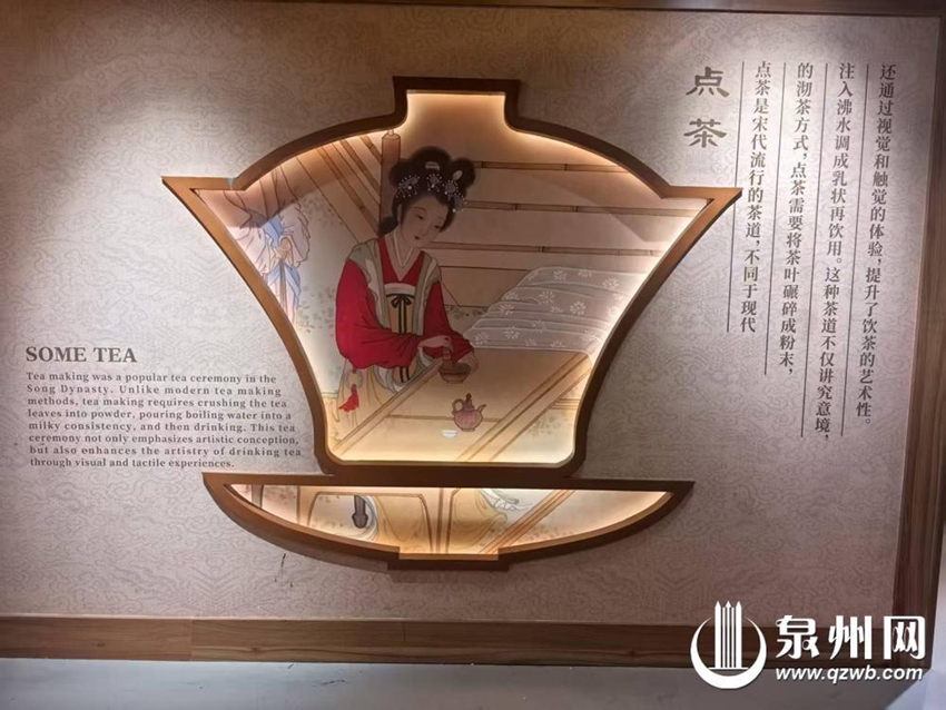 在八马茶业庄府巷店,外地游客体验宋式点茶,店长正在细心指导。公司泉州市区区域负责人王晓虹介绍:“这些年,随着电视剧《知否知否应是绿肥红瘦》《清平乐》和《梦华录》的热播,宋代点茶文化逐渐进入大众视野。与此同时,随着国人文化自信心的增强以及茶品牌的崛起,越来越多的年轻人对传统茶文化感兴趣,但苦于接触茶文化的渠道有限。2022年电视剧《梦华录》热播时,公司就携手《梦华录》茶百戏技术指导章志峰直播宋代文化之美。今年,也曾经邀请专业老师在威远楼表演宋式点茶,致力于弘扬中华优秀茶文化。”