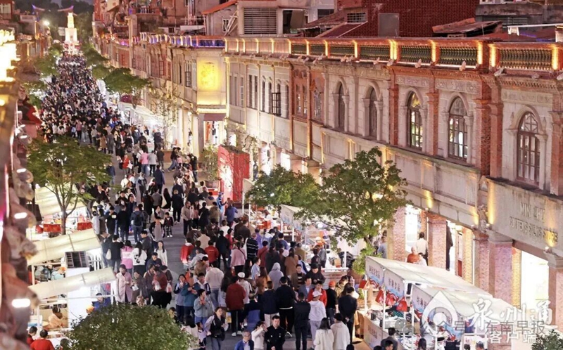 中山路热闹非凡,各式各样的美食摊位琳琅满目,令人目不暇接。