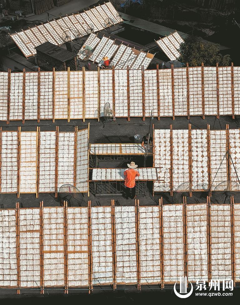 Sun-drying the rice noodles (Photo by Hu Weixian).